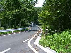 | ゲートは入り口から数キロ先にあり、ここから先は例年12月10日から4月25日まで閉鎖される。ただ実際には、この手前側も冬期には凍結(積雪)しているので通行するのは困難である。暫く進むと帯那山高原牧場への入り口(写真中央)があるが、牧場は閉鎖されており道も通り抜け出来ない。ゲートを過ぎると時々谷側の視界が開けて牧丘方面が顔をのぞかせる。 | ||||||||||||||