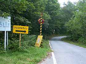 | 舗装路は約2.1キロほど続き、その後は第2のダートが始まる。第2のダート路は約3.3キロの延長を持ち、第1のダートより多少荒れた路面になっている。途中には開設中の林道(写真右)があるが現在は通行止め(2002年07月現在)。 | ||||||||||||||