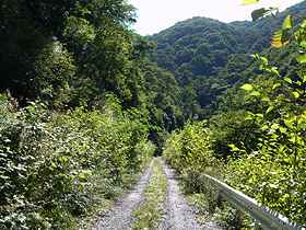 | およそ3.8キロほど走って終点となる。最後は釜無山林道に突き当たる形で終わり、同地点を左に曲がると釜無山林道の終点側、右に曲がると起点側となる。なお起点側へ下った際の道のりを書いておくと、内山林道の杭から約2キロほど下った地点に釜無山林道の杭があり、更にそこから約4.5キロほど下った場所で「信甲・館(塩沢温泉)」という旅館の西に出る。「信甲・館」は国道20号線から約400mほど離れた場所にあり、そこから国道に出ると長野県となる。 | ||||||||||||||