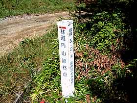 | 内山林道に入るには雨乞尾白林道か釜無山林道から入るが、今回は雨乞尾白川林道から入った。甲府側から行った場合、内山林道の起点杭は雨乞尾白川林道の看板から約2.3キロの地点に立っている(写真左と写真中央)。なお、ここまでの道筋については雨乞尾白川林道のページを参照してほしい。 | ||||||||||||||