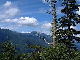 | 峠からの景色は非常に素晴らしく、青空の中を急速に流れていく雲が印象的だった。写真左と写真中央が山梨側、写真右が静岡側の景色。峠には山梨側と静岡側の林道の看板が仲良く並んでいる。 | ||||||||||||||