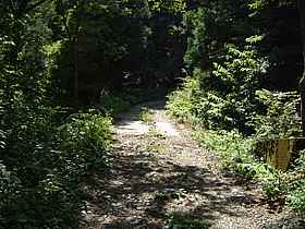 | 最後は約1.2キロ地点で道が途切れて終わる。周囲には何もなく10メートル四方の空き地があるだけである。鬱蒼とした樹木で眺望もなく、完全に山の中で終わっている。 | ||||||||||||||