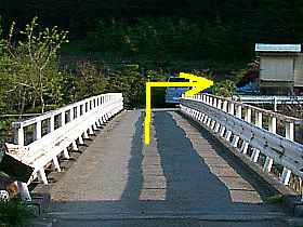 | 入道沢林道へ行くには都留市の県道705号を西進していく。すると都留市大幡の上大幡地区に「JAみふじ宝支店(農協)」が県道705号の右側に建っている。その「JAみふじ宝支店」の正面に左へと入る細い道があるので左折する(写真左)。《ちなみに写真中央は左折して直ぐの場所で振り返ったもの》。県道705号を左折すると「丹保一号橋」という橋になるので、そのまま大幡川を渡っていく(写真右)。なお、農協の10mほど西には富士急バスの「上大幡組合前」というバス停が県道705号の右側に立っているのでこれを目標にしてもいいかもしれない。《もう一つ書き加えると同地点は県道715号と接する数10m西でもある》。 | ||||||||||||||