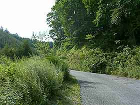 | 約1.9キロ地点でダム湖のほぼ西側に出る。上日川ダムの西側を半周する砥山林道だが、樹木に遮られるためダム湖を望める機会は余りない。ダム湖を見ておきたい人はゲート付近でジックリ見ておこう。 | ||||||||||||||