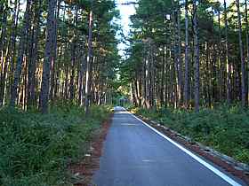 | 道幅は約1.5車線あり4輪同士でも余裕をもって擦れ違える。周囲の樹木で景色は望めなが、樹林帯の層が薄いので閉塞感はない。 | ||||||||||||||
