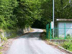 | 林道の杭からは約1.5車線弱のアスファルト路が延びている。カーブは1度か2度あるだけで、後は殆ど真っ直ぐな道だ。山間の道なので眺望は無いが薄暗さは感じない。 | ||||||||||||||