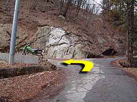 | 千田橋を渡ると直ぐに右へと上っていく。勾配は大きめで、暫くは昇仙峡を流れる荒川を見ながら上っていく。道幅は概ね1.5車線ほどあるが、場所によっては1車線強と狭くなる。4輪同士だと、場所によってはどちらかが道を譲る場面もあるだろう。 | ||||||||||||||