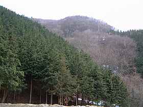 | 景色は良いが、切り立った崖下は数10mの谷底となっている。ガードレールのない場所が点在しているので気を付けたい。林道の杭から約3.3キロ地点で対面の山に「名所山林道」が見え始め、約3.5キロ地点で同林道と接続する。右に曲がると麗美な景色を持つ名所山林道となるが、現在は約1キロ地点で開設工事中(名所山林道は鶯宿峠へと抜ける予定で、鶯宿峠側からも工事を行っている)。 | ||||||||||||||