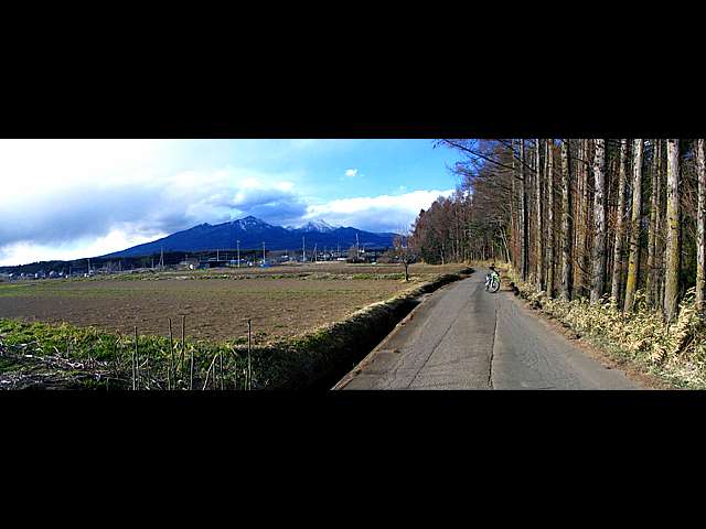 後方には巨大な八ヶ岳を望み、右手には広大な田畑が広がります。