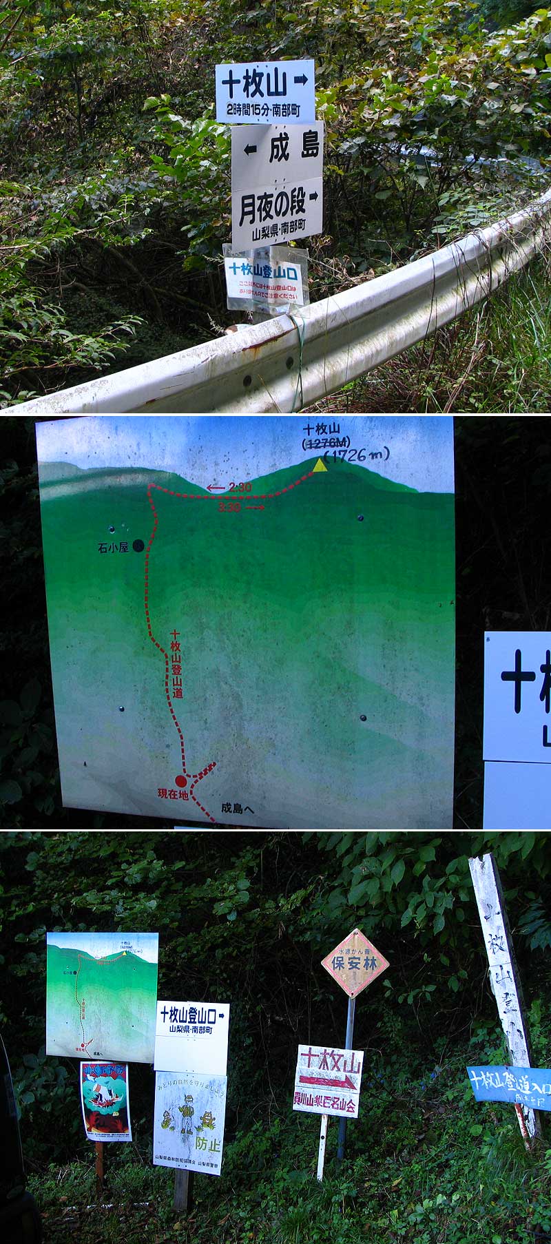 434林道剣抜大洞線(十枚山登山口の各種案内板)