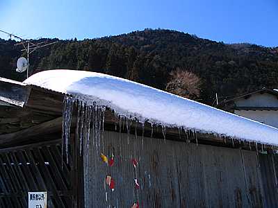 | 午後1時26分 ただ屋根の上には今でもかなりの積雪。 盆地との標高差は500mくらいしかないのですが(甲府駅は277m前後)、雪の降り方では大きな差があったようです。 |