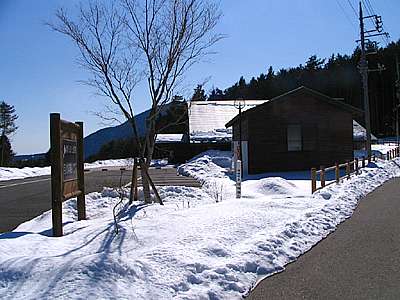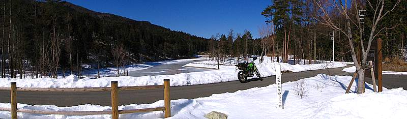 | 午後1時37分 伊奈ヶ湖大久保平林道を進みます。 場所によっては凍結部分もありますが、除雪されているので注意して走れば全く問題のない状態です。 |