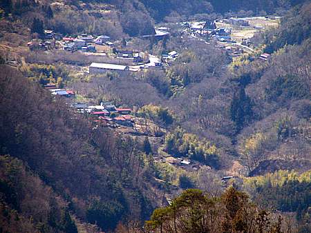 | 午後2時19分 ん〜、残念。こちらも集落の上部で行き止まりです。 最後は神社の境内へと行き着き、足もとには熊沢地区の農村地帯が広がっているだけでした。