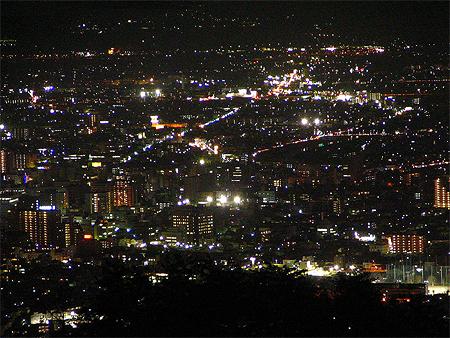 南方向の街明かり。 写真の右側は旧竜王町方向なので、場所的には国母あたりになのだろうか。 |