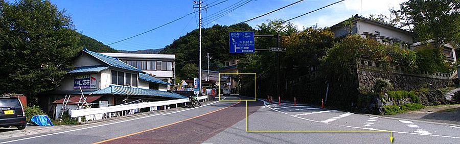 | 午前10時5分 裂石地区へ到着。 ここを右折すると県道201号となり、大菩薩嶺2056.9mの登り口として知られる上日川峠へと上っていきます。