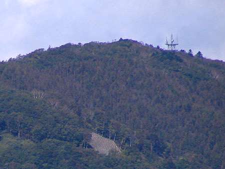 | 午前10時29分 手前に見えるのはここまで通ってきた県道201号で、その左側に見えるのは国道411号の上萩原大橋。その上には林道竹森線の道筋をくっきりと望み、更に柳沢の頭1671.2mにはNTTドコモの柳沢無線中継所が顔を覗かせています。