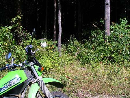 | 午後12時17分 道は約2キロほど続いて行き止まります。 看板がないので分かりませんが、終点から左へ延びているのが大谷ヶ丸への登山道でしょうか。 登山道が付け替えられたためか道は草に覆われており、今や人の通行は殆どないようです。