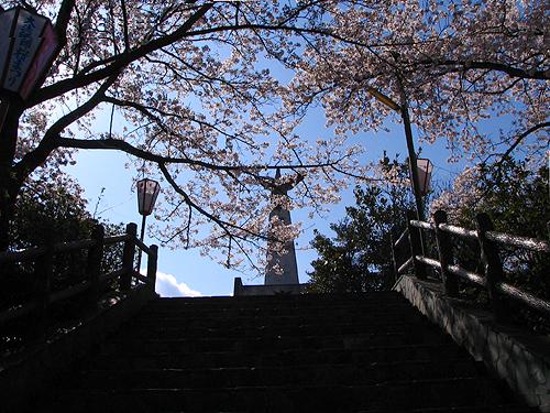 | 午後3時15分 中央広場へ上ってみることにします。 ちなみに階段の上に見えるモニュメントは鳩を型どった平和の塔。 中央広場のシンボル的存在です。 |