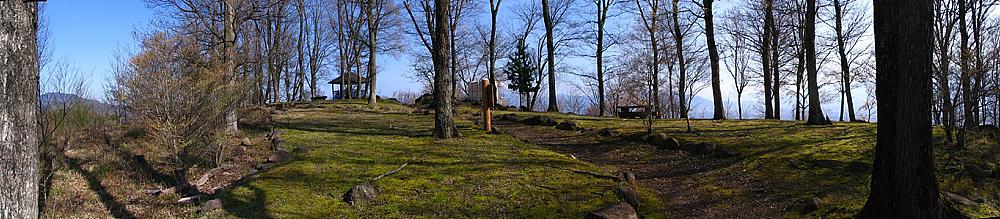午後3時26分 標高665mの山頂へ到着。 南北50m、東西100mくらいに切り開かれており、テーブル、ベンチ、展望台が設置されています。 |