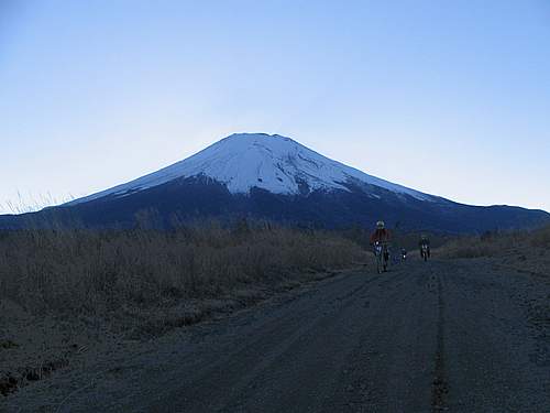 午後2時36分 だだっ広い道に出て、その先にでーんと鎮座する富士山。 |