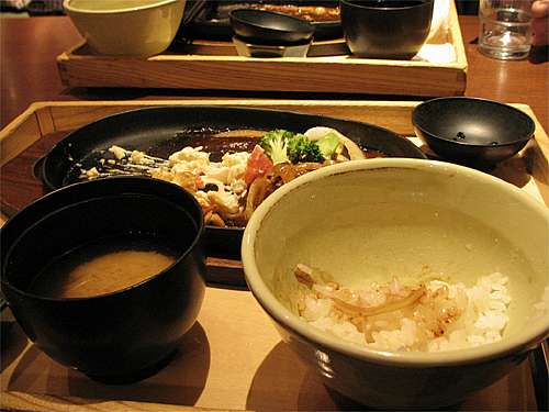 | 午後5時35分 近くの定食屋へ入って食事。 注文したのはデミバーグ定食920円〜 だったけど、個人的には味の方はイマイチだったかな ^^; |