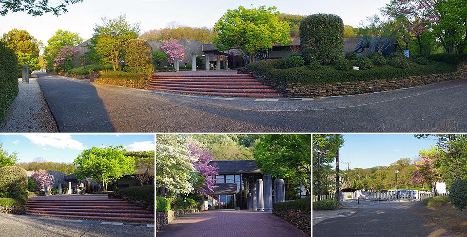 | 日本庭園を更に奥へ進むと県立考古博物館・山梨県埋蔵文化財センターが建っています。遺跡からの出土品を展示しており、年に何回かは考古学講座や体験学習などのイベントを行っているそうです。県立考古博物館・山梨県埋蔵文化財センターの先は正面駐車場で、単に県立考古博物館や山梨県埋蔵文化財センターへ来るだけなら同駐車場へ停めるのが一般的です。なお地図では同駐車場から丘陵上部まで車道が続いていますが、車輌は入り口のゲートで通年通行止めとなっているので注意してください。 ここまでの経路と現在地まっぷ 正面入り口のゲート 元の写真に戻す |
