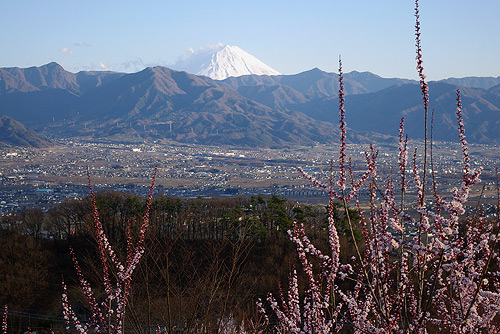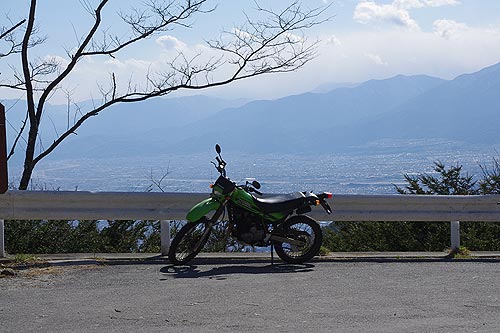 | 2012年4月6日 午後2時21分。 快晴〜!というほどではないものの、強い日差しの射すまずまずの良い天気。 桜が満開となった春にしては少々薄寒く感じる日でしたが、偶にはバイクへ乗らないとバッテリーが上がってしまう、ということで久々にプチ林ツーへ行ってみることにしました。 写真は甲府市上積翠寺町から見た甲府盆地。古湯坊温泉と要害温泉に分かれる分岐点からの撮影です。