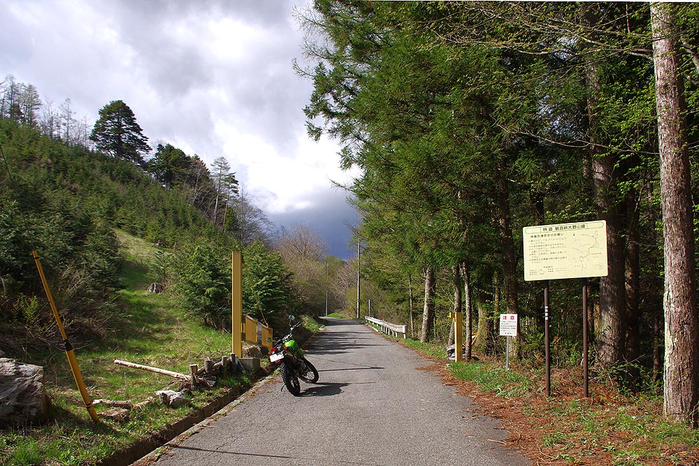 午後5時40分 ということで更に小森川林道を上って樫山小森川林道との分岐点へ。 入り口こそ少し舗装されていましたが、その先はまだ未舗装路が残されているようです。 久しぶりに入ってみたかったのですが、既に雨が降っていたのでパスして進みます。 |