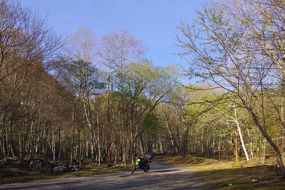 | 小川山林道を下ります。 つい10年ほど前までは気持ちの良い未舗装路が長く続いていたのですが、時代の流れとでも言うのでしょうか、今やすっかり舗装化されてしまいました。 |