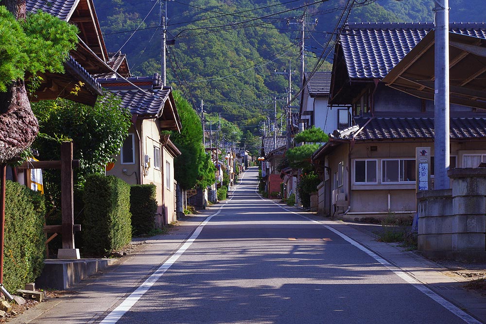 | 本郷地区の集落を右手に見ながら釈迦ヶ岳へと上ります。 | ||
