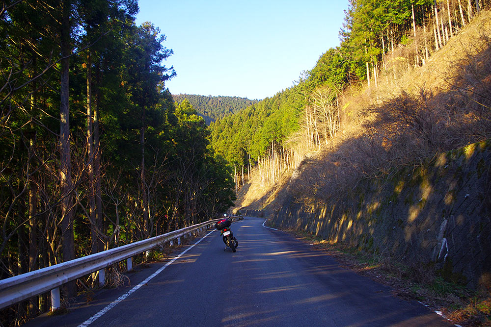 | 上佐野線は約1.8キロの町道。ほぼ全線が樹林帯に囲まれた狭い道で、場所によっては落下道になっているのでバイクでも気を遣います。 | |||||