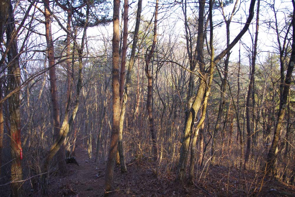 | こちらは北側に続く尾根。密集するする木立ちの間から入ってみましたが....... | |