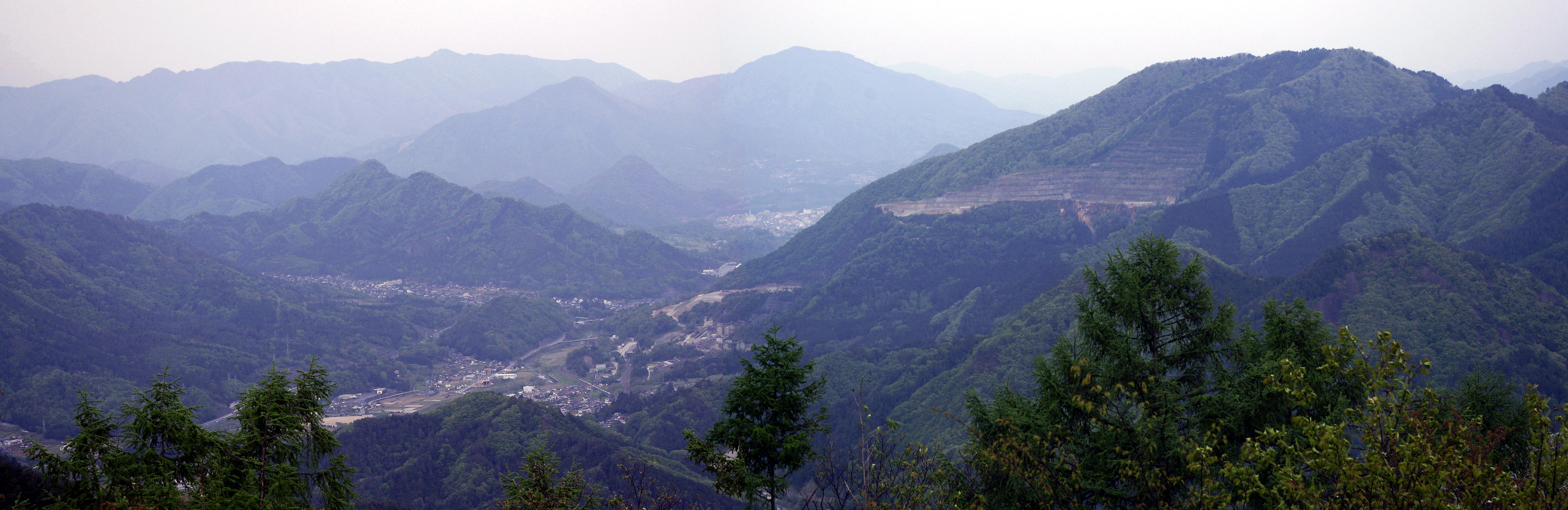 | 黒野田林道から見た採石場と初狩町はこんな感じ。