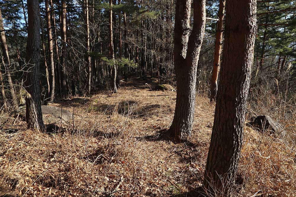 | 14時39分 勾配の殆どない平坦な道を東進すること5分で大岩園地へ到着。かつては東屋が建っていたそうだが現在は撤去されていてその痕跡もない。 |