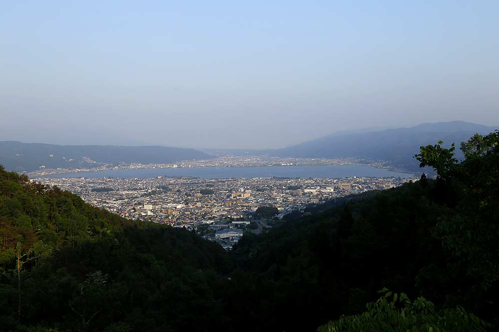 | 17時59分 塩嶺御野立公園展望台からの景色。 天気が良ければ諏訪湖の中央やや右に富士山、左側に八ヶ岳がくっきりと見えるそうだ。 |