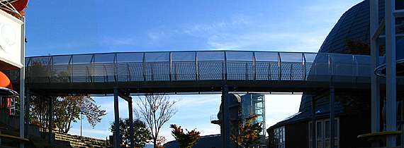 | ここからは展望台の北側にある「こどもの国」へ行ってみることにします。こどもの国は駐車場からも上って行くことができますが、駐車場の上に架けられた橋からも行くことができ、渡りきると直ぐに「こどもの国」入り口です。 |