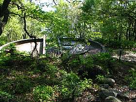 | さて一番奥まで行くとライオンの池となり「こどもの国」はここで終わります。ただその先へも進むことができ、更に奥へと進んでいくと白壁の仏舎利塔へと行き着きます。仏舎利塔とは釈迦の骨である仏舎利を納めた塔で、愛宕山の仏舎利塔は1972年10月25日に落慶したそうです。以前は盆地の各所からも見えて目立つ存在でしたが、いまは木立に囲まれた中ひっそりと建っています。さてここからは仏舎利塔の空き地からも見える夢見山や大笠山へ向かってみたいと思います。 |