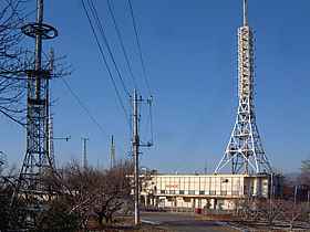 | 頂上に着いてまず目につくのは無線中継塔とNHKのテレビ塔です(写真左)。その直ぐ奧にYBSのテレビ塔が建ち(写真中央)、坊ヶ峯の突端にUTYのテレビ塔(写真右)が建っています。 | ||