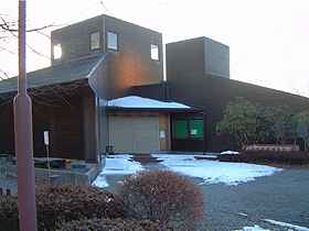 | さて展望台を下り更に奥へ進むと第3駐車場があります。駐車場から続く階段を上っていくと、先ほど屋根だけ見えた森林学習展示館に突き当たります。その奧には展望休憩室がありますが当日は閉まっていました。森林学習展示館は12月1日から3月20日まで休館だそうですが、インターホンを押せば職員が来て案内してくれるそうです。 |