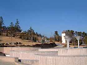 | さて、ドームから更に奧へと進みます。途中には遊具のあるアクアアスレチックや池のあるウォーターガーデンなどがありますが、階段と坂道が続くため少し上るのが大変かもしれません。 |