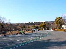 | 運動場を1周して駐車場へ戻ると、南西斜面へと下りていく階段があります。階段は遊歩道へ続いており、道沿いには梅の木が植えられています(ベンチや休憩所もあります)。 | |||