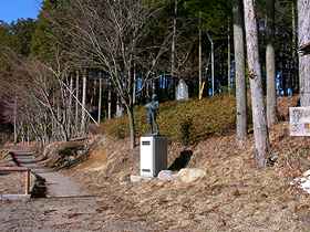 | 森林科学館の横には南へと延びる遊歩道があります。約3分ほど山道を歩くと展望台が現れ(写真右)、その向こうには甲府盆地が広がっています。 |