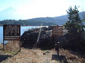 河口湖美術館は1991年4月に富士五湖周辺としては始めて建てられた美術館です。富士山をテーマとした美術品が常設されている他、年8回の企画展が開催されているそうです。美術館の裏は広大な芝生広場が広がっており、湖畔には遊歩道が続きます。残念ながら産屋ヶ崎(写真上の左から突き出ている岬)の陰で富士山は見えませんが、休日には多くの観光客で賑わいます。 |
