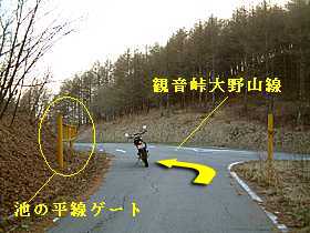 | 荒川林道は黒平町で池ノ平林道に接続しています。池の平林道へ入らず甲府へ戻ることも出来ますが、今回は池の平林道へと行ってみることにしました。 この池の平林道は市営(4442m)と県営(1339m)に分かれていますが、両者は繋がっているので走るに際しては気にする必要はありませんね。 少しゆっくり走りすぎました。日暮れが迫っているので一気に走って木賊峠へと到着です。←省略しすぎ〜 ^^; |