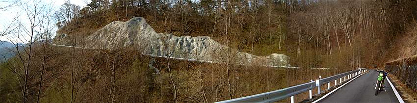 個人的には北部にある舗装林道群の中では荒川林道が最も好きな林道です(他の林道が好きな方すみません)。 標高が高く、谷側が開けているので何処からでも爽快な景色を楽しめます。ただ標高が高い分、新緑も遅れているようです。赤茶けた山肌には何処か荒涼とした雰囲気が漂い、緑が色濃く映えるまでにはもう少しの時間がかかりそうです。 |