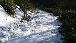 今回は入りませんでしたが、1週間ほど前に入ったときは小字沢線のダートは約2キロほどとなっており、またラスト1キロくらいのところでは約10センチの積雪路となっていました。 |