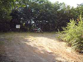 | ここまで概ね上ってきた道だが約3.1キロ地点(写真左)からのやや荒れた坂を上っていくと、約3.3キロ地点で小さな空き地へと行き着く(写真右)。同地点には保安林区域図の看板が立っており、そこから先は一転して下っていく。 | ||||||||||||||