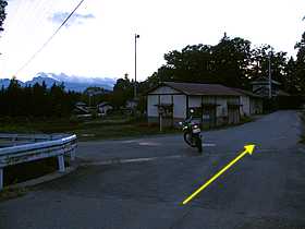 | 約2キロ地点の分岐路を右直進に進んでいくとゲートから約2.3キロ地点(写真左)で県道605号へと至ります。同地点には高根町営の日影田バス停が立っており、その先は久保川に架かる日影田橋へと続きます。日影田橋を渡っていくと清里駅方面へと進みますが、渡らずに久保川に沿って折り返すように南へと下っていくと(写真右)やがて県道619号へと至ります。県道605号から県道619号へと進むと浅川地区や小倉寺地区を経て、最終的には中央自動車道の須玉インターチェンジ近くの国道141号へと抜けられます。 | ||||||||||||||