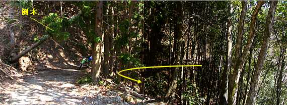 | 右手は5mほどの高低差で神田木沢を流れる川(写真左)が下っており、その対岸は対面の山が間近に迫ります。終点に指標となるようなものはなく、最後はただ単に鬱蒼とした樹林帯の中で終わります。 | ||||||||||||||