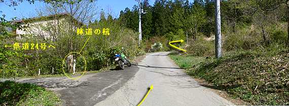 | また逆の道志村側から行く場合は県道24号の道坂トンネル(延長476m/写真左)を出て約5.5キロほど西進した場所が同地点となっています。分岐路はその手前10mほどの場所で左手に延びていますので左折します。 | ||||||||||||||